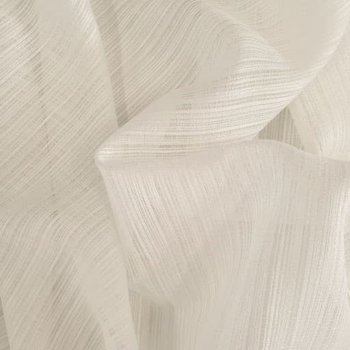 Alina Ivory is a 300cm wide IFR voile featuring a charming self stripe and open weave that brings texture and depth to any interior. Subtle variations in yarn thickness create a natural character, a comfortable balance of structured smooth yarns with twisted irregular yarns.